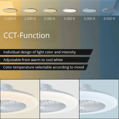 3. Tunable white: The white light can take any values in the listed Kelvin scale, for instance 2200K up to 6500K.