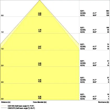 The colour code is a combination of colour rendering (CRI) and light colour (Kelvin). The first number indicates the colour rendering (1 = very poor colour rendering, 9 = maximum colour fastness). The second and third number contains the light colour. Example: the colour code 830 consists of good colour rendering (8) and warm white light (3000K). |