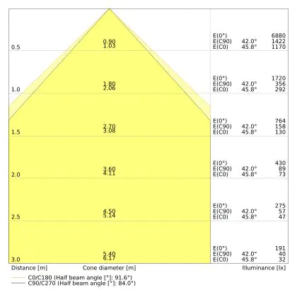 The Luminous Efficacy (lm/W) indicates how efficiently a light source uses energy. We divide the number of lumens by the wattage. The higher the number, the more efficient a product is in terms of energy consumption. LED lighting has a considerably higher lumen/Watt ratio than conventional lighting.
