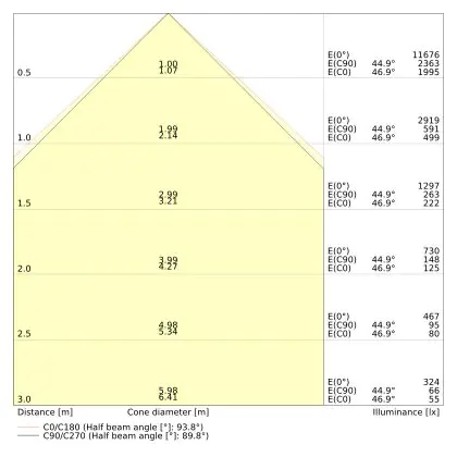 The colour code is a combination of colour rendering (CRI) and light colour (Kelvin). The first number indicates the colour rendering (1 = very poor colour rendering, 9 = maximum colour fastness). The second and third number contains the light colour. Example: the colour code 830 consists of good colour rendering (8) and warm white light (3000K). |