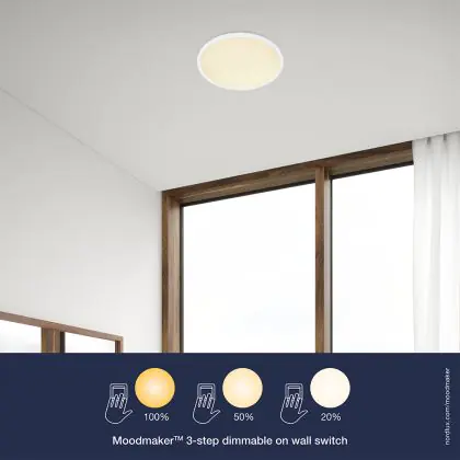 4. Dim to warm: Dimming makes the light warmer (more yellow). The more you dim, the warmer the colour.
