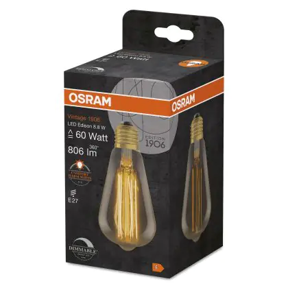 Osram Vintage 1906 LED E27 Edison Filament Gold 8.8W 806lm - 822 Extra Warm White | Dimmable