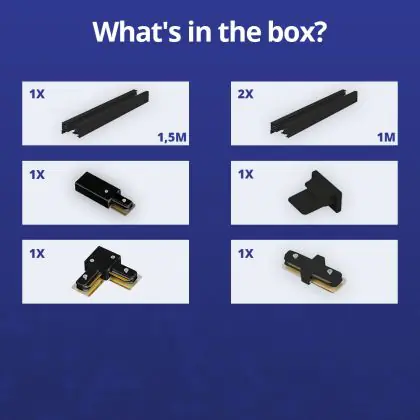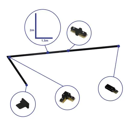 Rail Set 1-Phase L 1,5 x 2 Meter Black | incl. End Cap, Power Connector and L -Connector